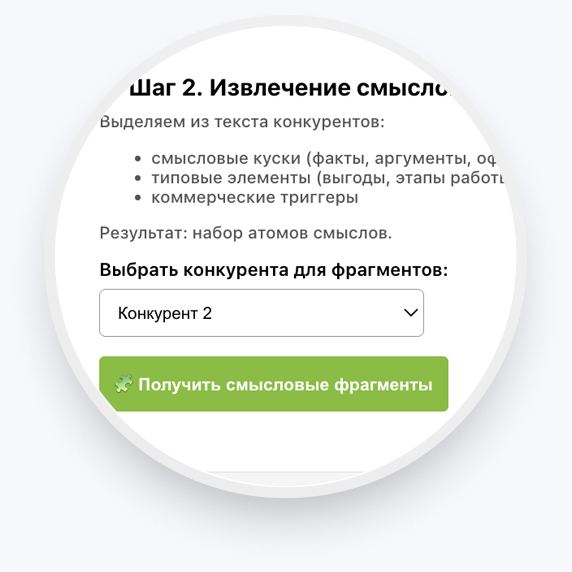 - Разбирайте страницы конкурентов на атомы смысла.